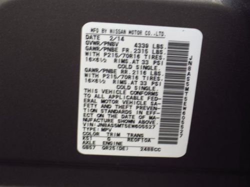 VIN (Vehicle Identification Number): JN8AS5MT5EW605527