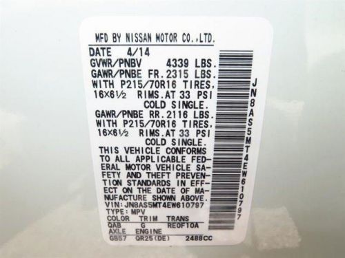 VIN (Vehicle Identification Number): JN8AS5MT4EW610797