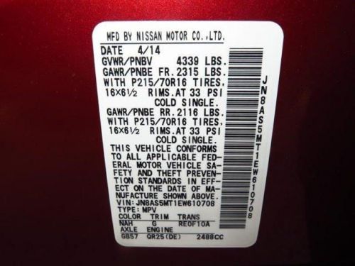 VIN (Vehicle Identification Number): JN8AS5MT1EW610708