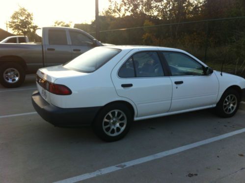 This car is in great condition. I am moving to Colorado and need to sell my car. It is a great car but it is two-wheel drive and I need four-wheel drive for driving in the snow. It is a 1998 Nissan Sentra Sedan XE, four door, 1.6 Liter, 4-cylinder, 5-speed manual. Its mileage is 115,000. August 2013 it passed its TX vehicle inspection. It contains an AM/FM/CD/AUX audio system. Its clutch was replaced March 21, 2012. I have taken great care of this car, making sure it is always up to date on oil changes. Before I drove this car it belonged to my dad who also took good care of it. The car has remained in a smoke free environment with my family. If you have any questions please contact me. I will respond promptly to emails.