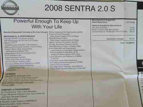 2008 Nissan Sentra S Sedan 4-door 2.0l 1 Owner Non Smoker All Records on 2040-cars