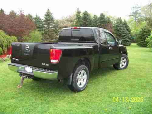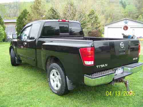 UP FOR YOUR AUCTION VIEWING I HAVE A GREAT NISSAN TITAN 4X4 KING CAB SE....THE TRUCK SPEAKS FOR IT SELF..IT RUNS AND DRIVES LIKE A TRUCK WITH 50,000 MILES...THE UNDER CARRIAGE IF FREE OF RUST OR ANY DAMAGE AS IS THE BODY..IT DOES HAVE A FEW SUPERFICIAL SCRATCHES ON IT BUT A GOOD BUFF WOULD TAKE THEM AWAY..THE TRUCK IS FOR SALE BECAUSE IT IS NOT BIG ENOUGH OR SET UP TO HAUL A FIFTH WHEEL CAMPER..IT HAS NEWER BRAKES ROTORS , HUB ASSEMBLIES AND I,M SURE IM MISSING SOMETHING....IT RUNS AND SHIFTS LIKE ITS SUPPOSE TO AND IT DOESNT LEAK FLUIDS..THE INTERIOR IS IN GREAT SHAPE MINUS A SMALL SEPERATION AT THE SEAM IN DRIVERS SEAT COULD BE STITCHED TIGHTER EASILY..THE 5.6 V8 HAS LOTS OF POWER BUT STILL GIVES GREAT GAS MILEAGE..THIS TRUCK WONT DISAPPOINT YOU..PLEASE ASK ALL QUESTIONS PRIOR TO BIDDING AND FEEL FREE TO INSPECT IT PRIOR TO BIDDING..FLY IN TO ROCHESTER N.Y. OR ELMIRA REGIONAL AND DRIVE IT HOME I WILL PICK YOU UP FREE OF CHARGE...IF YOU NEED IT SHIPPED I WILL HELP ALL I CAN BUT SHIPPING FEES ARE BUYERS RESPONSIBILITY ...PLEASE CONTACT ME FIRST IF YOU HAVE A NEG..OR LESS THAN 5 FEEDBACK OR I WILL CANCEL YOUR BID...THIS TRUCK HAS A TON OF MILEAGE LEFT ON IT IF YOU KNOW ANYTHING ABOUT THE NISSANS OR TOYOTAS...GOOD LUCK AND HAPPY BIDDING...I WILL ENTERTAIN OFFERS BUT NO TRADES AT ALL...THANK YOU AND GOD BLESS...the vehicle history report shows 2 accidents....they were both so minor that they should not have even been reported...the last of which was in a parking lot and an old guy rubbed down the right side fro wheel opening to the rear door...was repaired by certified body shop....not filled with bondo...