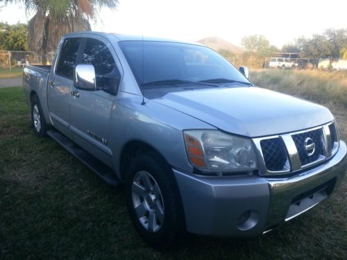 2006 Nissan Titan Crew Cab 4 door LE Silver 4 Door Pickup 5.6 L V8-cylinder engine with 5 Speed Automatic Transmission 2wd suspension Tires will need replacing sooner or later, they have 7/32nds thread left This is a non-smokers vehicle Takes Regular Gas CD player Radio 135,000 miles only Has two sets of keys and remotes. This Titan drives well with no problems, engine light is on. This vehicle is LE edition with black leather interior, towing package with wiring, power sliding rear window, power windows and power locks, OEM Rockford Fosgate stereo system, rear parking sensors, running boards. Engine and Transmission work Great. It came loaded with these standard features and more: Electric Windows Electric Door locks Electric Door Mirrors Tilt Steering Wheel Electric Drivers Seat and passenger seat Heating and Air Conditioning Anti-Lock Brakes Air Bags Factory Security System Leather seats Rear power sliding window Cruise Control Fog lights Adjustable Pedals Memory seats Steering wheel controls Digital top tempertaure gauge Rear exterior truck bed compartment Tailgate bedliner Heat warmer seats and more… (KBB VALUE OF THIS VEHICLE IN FAIR PRIVATE VALUE IS : $9,500) Flaws that I noticed by me personally: Front windshield needs replacing, front right passenger window does not work, driver leather seat has big slash and a lot of wear, rear right small window on rear back is shattered, steering wheel leather is worn, center dash piece that goes around radio is cracked, missing two front bumper filler plastics that go under each headlight as pictured, tires are in decent condition. This is nothing major to replace or fix but just things I listed here. Own this vehicle at low price and have it looking perfect with minimal expense. Car will be Sold as Is, This is a Dealer Repo. Immediate Deposit of $200.00 thru PayPal, Buyer must pay in cash or certified check and pickup Car in person within 7 days. This is being sold by dealer and there are no extra or hidden fees. You pay nothing extra but price of vehicle and to title the vehicle in your name in this state or in your state.