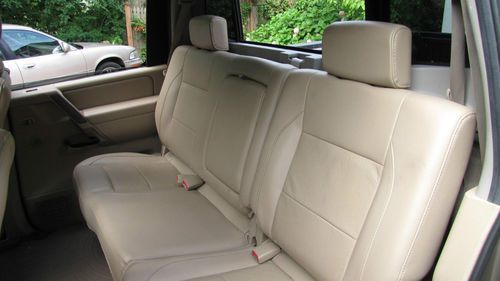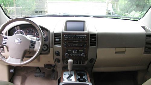 2009 Titan 4x4 Crew Cab LE, Leather Interior Fully Loaded, Heated Seats, 6 Disc CD Changer, XM Satellite Radio (subscription for life of vehicle), Rockford Fosgate with steering wheel controls, Blue tooth Hands-free Phone System, 6 cup and 2 Bottle holders, 22" wheels, Built in garage door openers, Seat memory, Lockable bedside storage, Tri-Fold Aluminum Bed Cover, Side Step Running Boards, Vehicle Security System, Factory Sprayed Bed Liner, Tow Package (trailer hitch, telescoping side mirrors, tow traction selection,) Powered Rear Window, Adjustable Pedals.