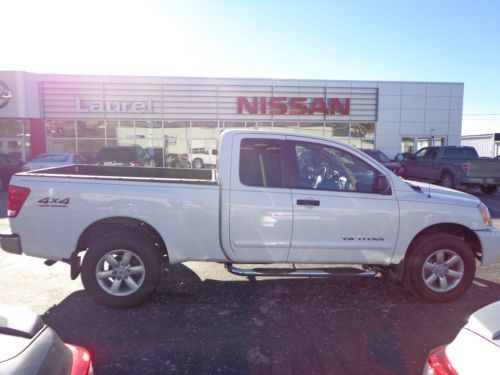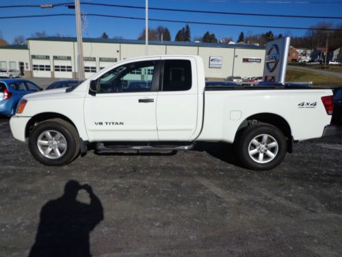 SINCE THE FACTORY WARRANTY HAS EXPIRED, WE ARE INCLUDING A FREE 3 MONTH / 3,000 MILE LIMITED POWERTRAIN WARRANTY AND IS VALID FROM THE PURCHASE DATE. WE ALREADY COMPLETED ALL RECOMMENDED SERVICE INCLUDING OUR 160 POINT INSPECTION AND COMPLETED A FRESH OIL CHANGE AND NEW STATE INSPECTION FOR THE NEW OWNER! CONDITION WOW, WHAT A SHARP, CLEAN, 2010 NISSAN TITAN SE KING CAB OFF ROAD 5.6L V8 4X4 IN BLIZZARD PAINT AND CHARCOAL BLACK LEATHER SEATS WITH ONLY 62,156 1-OWNER ORIGINAL MILES! NON-SMOKER VEHICLE AND INTERIOR IS FREE OF ANY ODORS OR MAJOR FLAWS. CLEAN TITLE AND CLEAN CARFAX REPORT WHICH WE HAVE ON HAND FOR ANYONE WHO WISHES TO VIEW THEM AND THE ENTIRE HISTORY REPORT CAN BE EMAILED UPON REQUEST. TIRES ARE ALSO EXCELLENT AND WELL OVER 85%. WE ALSO JUST SERVICED THIS NISSAN AND ALL RECOMMENDED SERVICE HAS BEEN COMPLETED. I WOULD PERSONALLY RATE THIS VEHICLE A 9 OUT OF 10. I COULD ONLY FAULT THIS TITAN FOR A FEW MINOR STONE CHIPS, A FEW LIGHT SCRATCHES, AND A SMALL DING ON THE DRIVER SIDE BED AND I TRY TO POINT OUT ANY FLAWS IN THE VIDEO WHICH IS PROVIDED. I PERSONALLY TEST DROVE THIS NISSAN AND IT FEELS JUST LIKE A BRAND NEW VEHICLE. WE JUST COMPLETED A NEW PA STATE INSPECTION ALONG WITH A FRESH OIL CHANGE AND DETAIL ALONG WITH A FRESH INSPECTION AND SERVICE. IF YOU ARE SEARCHING FOR A CLEAN, WELL MAINTAINED NISSAN TITAN SE KING CAB 4X4 AND IN A GREAT COLOR, THIS IS YOUR NEW TRUCK! THANK YOU FOR VIEWING AND BE SURE TO VIEW ALL 24 PHOTOS AND THE CARFAX REPORT ALSO INCLUDED WITH THIS LISTING AND ONLY 62,156 1-OWNER ORIGINAL MILES!!!!! CARFAX REPORT