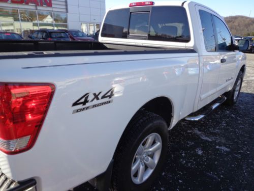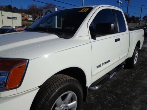 THANK YOU FOR VIEWING OUR BEAUTIFUL, 1-OWNER 100% CARFAX CERTIFIED, 2010 NISSAN TITAN SE KING CAB OFF ROAD 5.6L V8 4X4 AUTOMATIC TRANSMISSION IN BLIZZARD PAINT AND CHARCOAL BLACK LEATHER SEATS AND ONLY 62,156 1-OWNER ORIGINAL MILES! WE ARE A NISSAN DEALERSHIP IN WESTERN PENNSYLVANIA. WE ARE OFFERING THIS 2010 TITAN 4X4 AT A FIRM 'BUY IT NOW' PRICE ON EBAY FOR A VERY LIMITED TIME. PLEASE VIEW THE COMPLETE LISTING INCLUDING 24 PHOTOS AND A YOUTUBE VIDEO OF THIS VEHICLE ALONG WITH DETAILED VEHICLE INFORMATION. PLEASE CONTACT SCOTT LONG @ (866)226-0570 OR (814)659-1908 OR EMAIL TO LAUFORD@AOL.COM WITH ANY QUESTIONS.