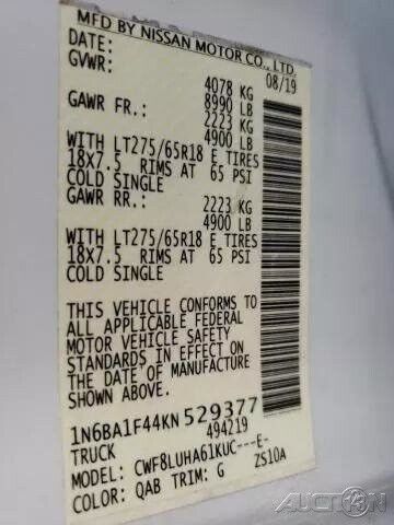 VIN (Vehicle Identification Number): 1N6BA1F44KN529377