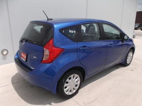 SV trim, Metallic Blue exterior and Charcoal interior. Overhead Airbag, iPod/MP3 Input, CD Player, Bluetooth. EPA 40 MPG Hwy/31 MPG City! Warranty 5 yrs/60k Miles - Drivetrain Warranty; CLICK ME!======KEY FEATURES INCLUDE: iPod/MP3 Input, Bluetooth, CD Player Keyless Entry, Child Safety Locks, Steering Wheel Controls, Electronic Stability Control, Bucket Seats. SV with Metallic Blue exterior and Charcoal interior features a 4 Cylinder Engine with 109 HP at 6000 RPM*. ======EXPERTS RAVE: KBB.com's review says Both are smooth and quiet by economy-car standards, and we were impressed with the refinement of the Note in particular.. Great Gas Mileage: 40 MPG Hwy. Dealer not responsible for pricing errors. Horsepower calculations based on trim engine configuration. Fuel economy calculations based on original manufacturer data for trim engine configuration. Please confirm the accuracy of the included equipment by calling us prior to purchase.