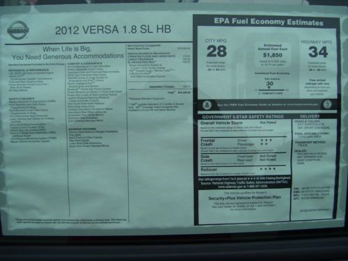 Nissan versa 4 cylinder mpg hatchback(US $9,100.00)