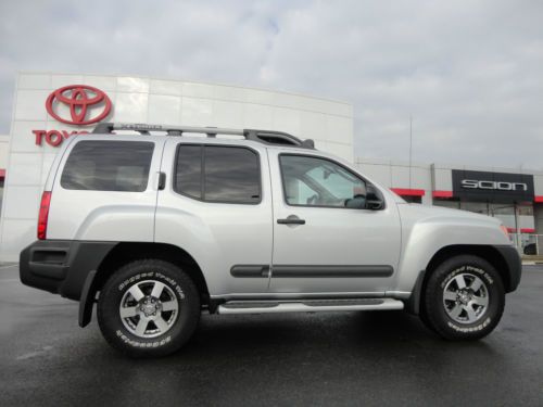 THANK YOU FOR VIEWING OUR BEAUTIFUL, 1-OWNER WHICH WE SOLD BRAND NEW, 100% CLEAN CARFAX CERTIFIED, 2012 NISSAN XTERRA 4.0L V6 4X4 PRO-4X WITH LEATHER SEATS, ROOF RACK, NAVIGATION, ETC IN SILVER METALLIC PAINT AND BLACK LEATHER SEATS WITH 8,658 ORIGINAL 1-OWNER MILES! WE ARE A NISSAN - TOYOTA DEALERSHIP IN WESTERN PENNSYLVANIA AND WE ARE OFFERING THIS TOYOTA FJ CRUISER AT A SPECIAL, DISCOUNTED 'BUY IT NOW' PRICE ON EBAY FOR A VERY LIMITED TIME. PLEASE VIEW THE COMPLETE LISTING INCLUDING 24 PHOTOS ALONG WITH THE CLEAN CARFAX REPORT. BELOW IS A 3 MINUTE YOUTUBE VIDEO SHOWING THE COMPLETE VEHICLE INSIDE & OUT, JUST CLICK TO START VIDEO. PLEASE CONTACT SCOTT LONG @ (866)226-0570 OR (814)659-1908 OR EMAIL TO LAUFORD@AOL.COM WITH ANY QUESTIONS. THANK YOU FOR VIEWING AND BE SURE TO VIEW ALL OF OUR EBAY LISTINGS ALONG WITH OUR 100% POSITIVE FEEDBACK!