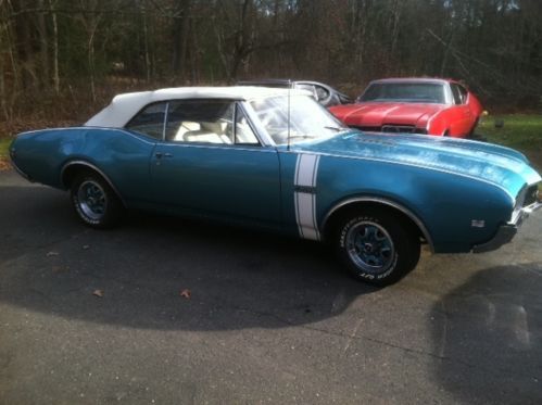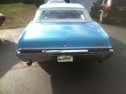 Selling my 68 442 convertible due to having interest in other cars. With this being said don't need to sell it nor do I need those fore mentioned cars of interest. So if it doesn't sell that's okay. History: I have owned this car for seven years and I am third owner. Second owner drove car seldom and was garaged. Odometer reads 103,000 miles but that did stop working after one year of me owning it. I have used this in summer months and one full year gone due to restoration. I would estimate 10,000 miles of use since purchase due to local use and one trip to Cape Cod. This car upon purchase was a true survivor in every sense of the word. Top was original as well as interior. All body panels original and untouched. Paint was original also. This car has never given me any problems and was never hammered. Still has original pressed ball joints as well as rear springs. Car rides incredible with no rattles. I have never taken motor over 4500 RPMs, yes guilty of occasional burn outs
