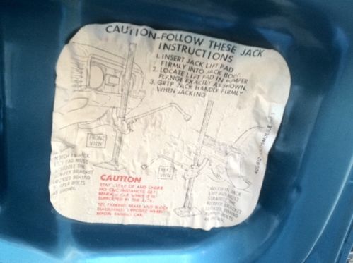 Trunk: Trunk compartment restored with original spare tire. I did put cover on it which technically should not be there due to Super Stock wheels. Floor mat is new and jack is complete and original. I did not choose to paint inside of deck lid because of original stickers were still in place and wanted that demonstrated.
