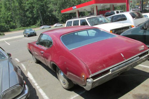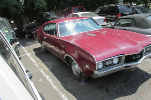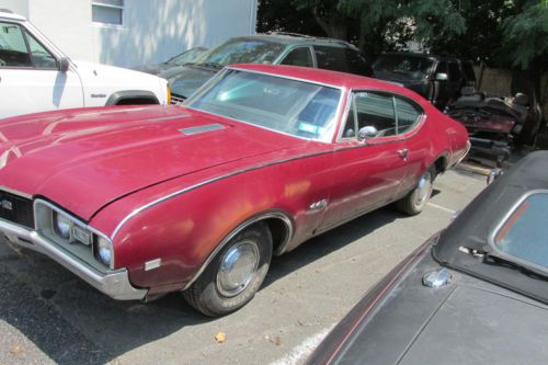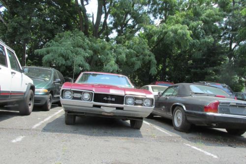 What we have here is a 1968 W30 442. Before all the experts starts building the gallows (for all you young experts Google it!) no I don't have paper work. Paper work is almost nonexistent for W30's. They came as window stickers (Forget it) or build sheets which could be anywhere, under back seat, behind back seat, on top of the gas tank, under carpet. I did check under the back seat but nothing. If I don't sell the car I will tear it apart anyway so if it's there I'll find it. The "proof" I have is this is a single owner car other than myself, I bought it summer or 2013 to restore with/for my son but he likes another car I have laying around. The original owner passed away and the car sat for years in a barn (that's right barn) on his now widows property. The story is he bought the near lowest optioned W30 442 new in 68. Options sure are low except for power steering, W30's didn't come AC or power brakes. What it does have is Heavy duty radiator, auto trans cooler, 400 ci engine with "D" stamped heads (not in car now, more on that later), limited slip rear, ONE hose for the inner fender to air cleaner, Red inner fenders, Special W30 Turbo 400 trans and the best for last , hubcaps that's right hubcaps. I am not an expert in GM products, I've always restored Mopars so if I missed something please let me know and I'll check it out. The car does run and drive but has the typical issues as other 1968 cars from salty upstate NY winters that have been left in a barn for years. Rust! All lower quarters, fenders, doors and trunk lid all have some kind of rust. Frame has rust through at the E brake location that was repaired by welding angle iron to reinforce it (not by me). Trunk is quite nice and floors have smaller holes but the cross supports are bad as they were close to the wet dirt for quite some time. All are easily repaired or replaced depending on what you want. All and I do mean ALL parts of this car are being reproduced and are quite inexpensive. The engine was replaced with a 2 barrel 350 by the owner to conserve gas? That's what the lady said so I'm repeating it. I do have the original engine and it is included in this sale. What is not included in this sale is a second 1968 442 (Canadian) 400 4 speed that I bought from Winston-Salem North Carolina (no title, interior shot). I bought it from a salvage yard for parts as I was going to restore the car and like to keep things as original as possible including sheet metal. when my search for new fenders kept showing me $900.00 plus figures, I decided to look for all the parts at once and got really, really lucky. All the sheet metal looks extra clean on the surface. The frame looked great. I can't guarantee this because as soon as I got it the weather kicked in. I did give it a once over while on the trailer when it was delivered and like I said all looked good. My plan is I'll wait to see if the W30 sells then I offer to sell the second car to the winner. If they don't want it I'll part it out to sell. If the W30 dosen't sell, I'll start restoring the car 04/01/14. Very Important if you are interested in the car, ASK QUESTIONS. I do not want any unhappy bidders and especially winners. ASK QUESTIONS, ASK QUESTIONS. I don't know everything about this car, Oldsmobile, W30's or 442's. Ask questions and if there is an answer I'll find it.
