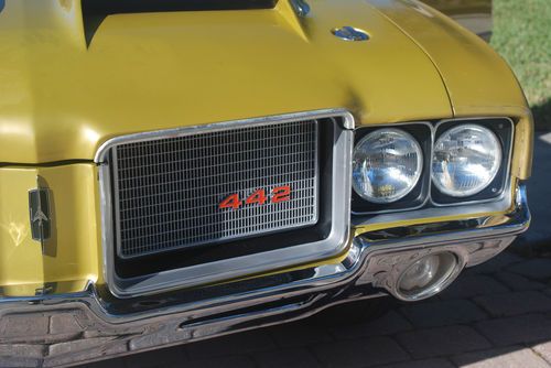 Additional mechanical improvements include, Edlebrok Torker 455 intake Manifold, Holley Dominator SMI stage 3 Carb, Hedman custom headers , and Custom installed flow master exhaust system , 1973 posi- traction rear was installed with new rear gearing. Engine is estimated at approx 450 HP runs really nice idles at 600 rpm. Can drive around town at 30 mph or smoke the tires if you have a need for speed. All new brakes front disc and drum rears, new heavy duty coil springs on front and new air shocks on rear. Power steering was rebuilt inlcuding the steering box. New over sized radiator for big block was installed can drive around town in traffic in 90 + Naples heat at 190 degrees no overheating, new water pump, all new wiring under dash, new belts, all new hoses, all lights were repaired to operate flashers, new head lights and new grill 442 installed. New bumpers front and rear, and new 28 inch Crager chrome rims on all 4 plus spare (to complete cloning).