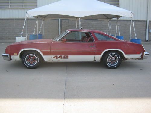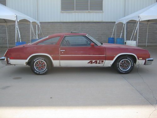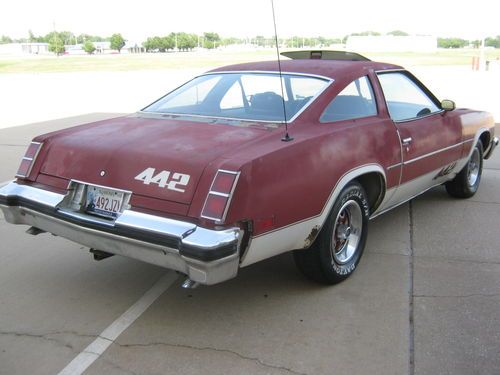 1977 Oldsmobile 442. All original, number matching. One owner for the last 36 years. Has the 350 engine with an automatic transmission. Runs real good with no smoke, strange noises or leaks. Sounds good with a fairly new dual exhaust. The transmission shifts the way it should with no problems. Brakes work perfect and has a new master cylinder. The paint is original and really needs to be repainted. But its original and you can see any damage its ever had. Nothing covered up. Dealer installed sunroof. Also has a receiver hitch. The headliner and sun visors are in near perfect condition. Has some rust behind the rear wheel but is only through the outside skin. The only rust I can find underneath the car is on the floor behind the passenger seat. The frame and the rest of the floor looks to be rust free. The hood has a slight bend to it on the passenger side where the hinge is(not too bad) but its there. It comes with the original 5 rally wheels. One being the spare. comes with the original jack also. The stereo is not original, its an old cassette player from the '80s but doesn't work. There is a large amp in the trunk behind the rear seat. The car had working A/C, but the compressor has a noisy bearing and made a lot of noise so the belt was taken off. This car drives great, Starts easy. Has good power, has good oil pressure, drives straight. Tag is up to date and I have a good clean Oklahoma title in my name.