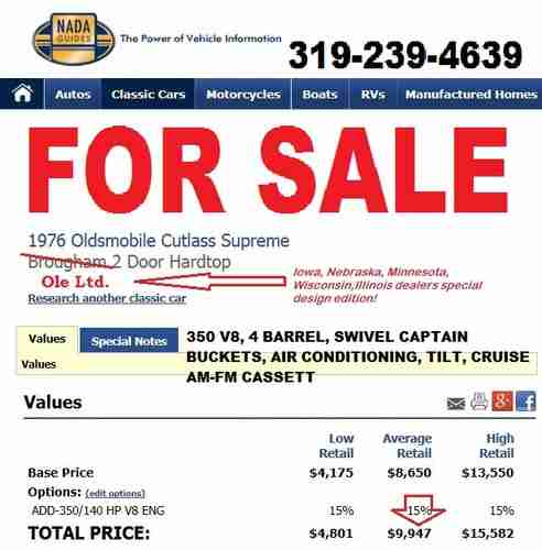 ~1976 Olds Cutlass ~ole Limited Edition~ ~one Owner ~with Pedigree Proof~ on 2040-cars
