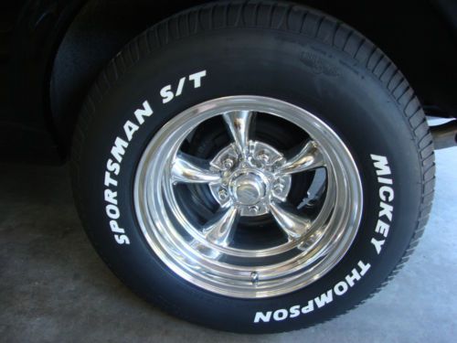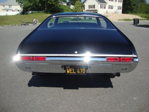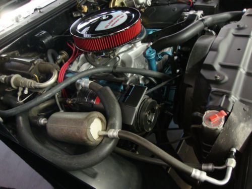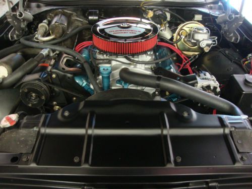 The car was originally Scarlet Red with the Scarlet Red interior. I had the car completely stripped to bare metal, including all jambs and inside of all body panels. The car retains all of its original sheet metal and had zero rust before being restored. All molding and emblem holes were welded-up, as well as the front fender mounted antenna, for a cleaner look. The new windshield has an internal radio antenna. Both the front and rear dash areas were re-painted the original Scarlet Red, while the glass was out. The car was then painted Gloss Black, using a urethane epoxy primer, two-stage base coat / clear coat urethane paint, then wet-sanded and buffed for a high luster finish, at a total cost of $16k. The bucket seat, console shift interior is 100% original and nothing has been changed or restored. The car has a factory tilt steering column and original AM radio. I have added an Autometer in-dash tachometer in the clock delete pod, which was tastefully done. The body was removed from the frame and all of the body-mount rubber bushings and bolts were replaced. The frame was painted satin black and the underside of the body was also painted satin black. Inside of the trunk remains original and untouched. The radiator core support was also rust-free; it was blasted and powder-coated satin black and it even has the original rust-free battery tray. Both front and rear bumpers were re-chromed by Tri-City Plating of Tennessee. Both pot metal vent window posts were re-chromed by R&D Finishing of Tennessee. All of the rubber bumpers and weather-stripping have been replaced with Metro SoffSeal. The original drive-train was a 350c.i. engine with a 2-speed powerglide transmission. I installed a professionally rebuilt 1970 455c.i. engine with 'E' heads and Edelbrock Performer Package, including: camshaft, lifters, double roller timing chain, aluminum intake manifold, 750cfm carburetor and a G.M. HEI distributor. Also installed was a professionally rebuilt Turbo 350, 3-speed automatic transmission with a new torque convertor. The rear end gears were changed from 2.73:1 to 3.73:1. With 28" tall rear tires, the ratio is actually 3.55:1. A rebuilt high torque G.M. starter motor and a 105 Amp one-wire alternator were added. The custom-made dual exhaust system consists of 1 3/4 " tube Hooker Headers with Dynomax Super Turbo Mufflers and 2 1/2 " aluminized pipe, for an awesome sound. The original 14 inch wheels and bias-ply tires were replaced with 15 inch U.S.A. Made wheels and radial tires. The wheels are American Racing Torque Thrust II, rear size: 15"x10" and front size: 15"x7", with custom ordered backspacing. The tires are Mickey Thompson Sportsman S/T white-lettered radials, rear size: 275/60R/15 and front size: 225/70R/15. The car has the original spare tire and jack in mint condition. The car originally had front drum brakes and was upgraded to power front disc brakes. All (4) ball joints and front end parts were replaced with Moog components. All control arm bushings were upgraded to PST Polygraphite. Upgraded Moog front and rear coil springs were added along with (4) KYB gas shock absorbers. All fuel, brake and transmission lines were replaced, along with the fuel tank sending unit. The air conditioning system was re-sealed, converted from R12 to R134a and blows ice cold. For any additional information about this car, please call me at 978-360-9898. Thank you for your interest. |
