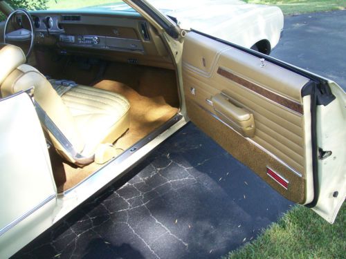 This car has power steering, power brakes, 350 rocket 4 barrel engine, 350 auto transmission, 12 bolt rear. It also has power windows, power seats, and cruise control that all work. It has air that blows very cold and still has r12. Radio and clock are not working at this time. This car has original paint, interior, and chrome. This car has not been restored and does not need to be restored. This Cutlass was purchased at an estate sale of the original owner. This car has been in a garage in Kansas since it was new. When I purchased it, it had 13,592 miles. I drove it from Kansas to my home near St. Louis. The car has 13,966 miles on it. The mileage may change. The car was last driven in 2004. When the car was purchased the tires were replaced. Also the fluids were drained and a new fuel pump and water pump were installed. The radiator hoses were replaced and the brakes were rebuilt. The carburetor was rebuilt and a tune up was done. (points, plugs, air filter) This is a rust free car from Kansas and can be driven anywhere. Winning bidder can fly into St. Louis and drive it home. Please email me any questions. Buyer is responsible for pickup. I will assist in any way I can. |