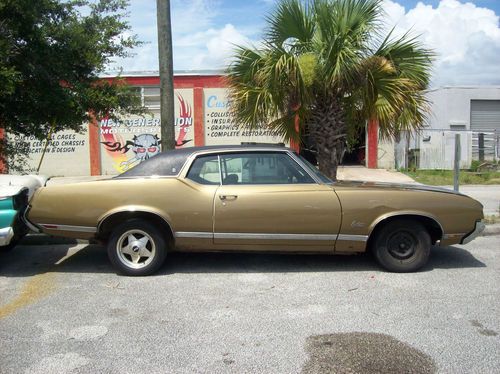 hello,,you are looking at a 1970 olds cutlass.with the 350 rocket motor....this car is very solid and would be a great project,or just drive it like it is...the floors are solid with no rust,the body has minimal rust in the usual places,,the interior is nice with exemption of the rip in the drivers seat..we got this car with intentions of restoring it to its original beauty...however we can not afford to do so anymore...the engine does not run....it has been sitting for about 5 years and it wont start now..maybe bad gas ??? the engine turns over freely and everything else works,,lights,etc...any questions feel free to ask...we can also help,or deliver for a fee..please discuss delivery prior to auction end...we will require a $250.00 deposit with in 24 hrs of auction end and full payment within 3 buisness days of auction end...we can keep this car until it can be picked up if paid in full and discussed prior to auction end..