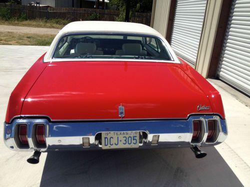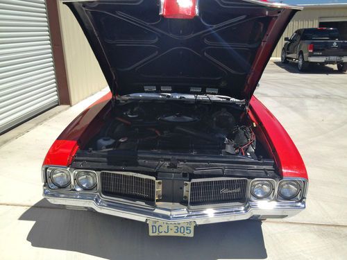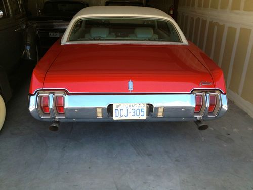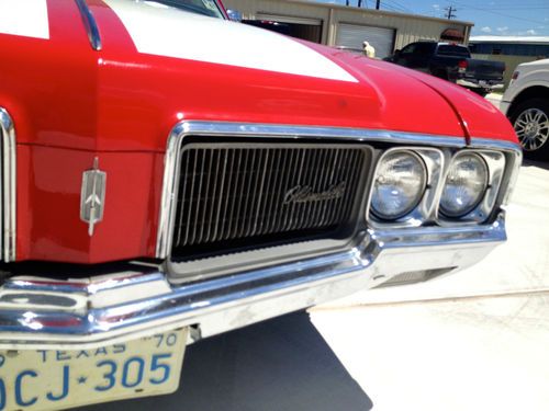 This is a unique Cutlass with a 455 large block engine. It has 76,392 miles on the odometer. This is a great car that has been garage kept, and has been driven periodically throughout my ownership of the car. This car could EASILY be a daily driver. This particular cutlass was rolled out of the factory in 1970 as a lime green car, but the previous owner decided to have it repainted. It's bright red paint, and white stripes will grab attention anywhere it goes.
