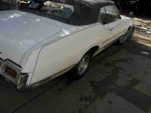 RARE 455 MUNCIE M20 WIDE RATIO.FACTORY HURST SHIFTER ..CAR..NICE DRIVER.SHIFTS AND DRIVES GREAT,,DRUM BRAKS HAVE FRONT DISC AVAILBLE EXTRA COST NEW .TOP/FRAME RESTORED...NEW POWER TOP. SOLID BODY WOULD MAKE A NICE 442 CLONE..INTERIOR VERY GOOD CONDITION...NEEDS CARP[ET..NEEDS BODY WORK ..FLOORS AND TRUNK ARE SOLID....BONDO AROUND REAR QUARTERS.....SHIPPING BUYERS RESPONABLITY...AS IS WERE IS NO WARRENTIES..EXPRESSED OR IMPLIRD....WILL HELP ON TRANSPORT ANY Qs Call.JESSE .(720)-495-4821