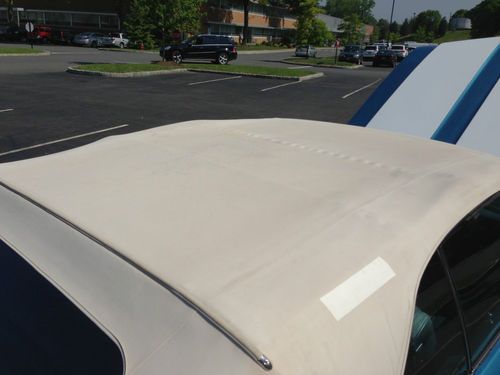 Totally original car from California. The interior is complete and everything from the manual windows, locks, radio, top, seats and etc functions well. The interior is clean and there are no cracks in the seats both front and rear. The dash is in great condition. It has 97k original miles. Factory A/C and radio. The car is a great driver and is currently registered. It comes with a spare rim. The top is near new but has 2 small rips from it being closed improperly. Runs and drives great. Starts right up and shifts through all gears. Stops well and has plenty of power. Rust free from what I can tell and shows no rust in the places that matter. The pictures are honest and the car is ready to go. Chrome is complete and good. Great driver or restoration starting point. New exhaust but ends under car as pictured. Its a 350 with a 4 barrel carb mated to an auto tranny.