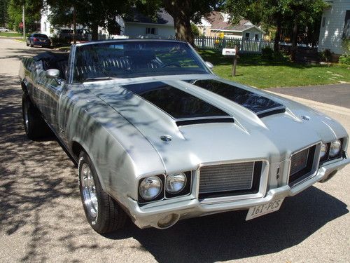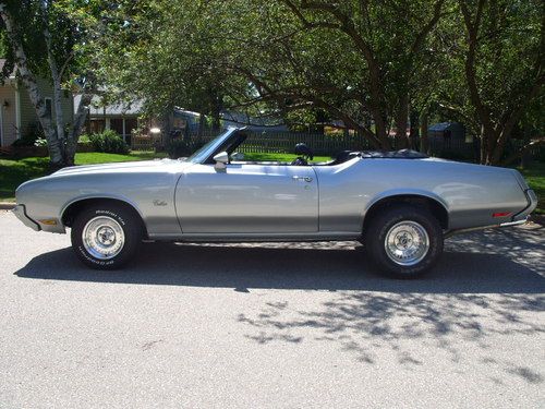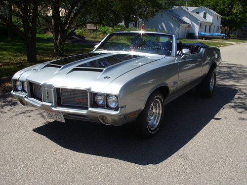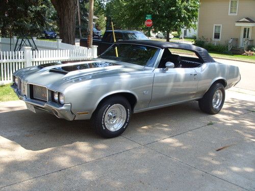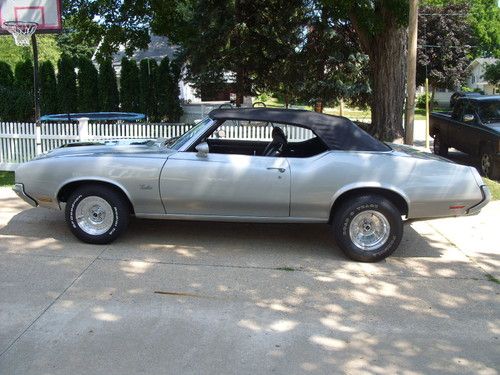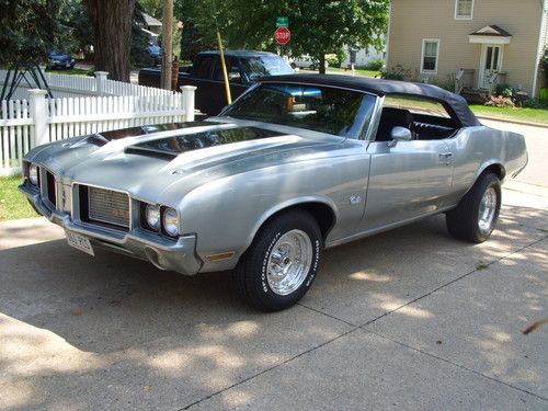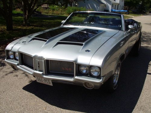 1972 Cutlass Supreme convertible, cortez silver, black bucket seat interior with console, Power convertible top. New top and boot. Original Rocket 350 4 bl, rebuilt top to bottom.mild cam, Original Quadrajet carb., also rebuilt. Have recently acquired complete correct Ram air set up but have yet to install because HEI upgrade won't clear original base. Needs 73 or newer base to install. Rebuilt turbo 350 with shift kit. Runs and drives great! Ceramic coated headers with aluminum 2 1/2" pipes. Sounds great. Options: power steering, power disc brakes in front, power windows and power top. Very nice solid straight body throughout. Interior is original and very clean. added cd player, Very dependable. Drive anywhere with confidence.