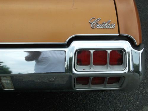 THIS "ONE OWNER" 1972 OLDS CUTLASS FOUR DOOR RUNS AND DRIVES WELL. IT HAS BEEN IN STORAGE FOR THE LAST 10 YEARS. IT HAS THE 350 C.I. "ROCKET" MOTOR WITH 2 BBL CARB AND AUTOMATIC TRANSMISSION. IT IS STILL IN ORIGINAL CONDITION BUT THE EXTERIOR HAS SOME OLD PAINT/BODY WORK BOTH SIDES. IT PROBABLY NEEDED REPAIRS FROM THE SIDES OF THE GARAGE DOOR. THE PHOTOS PRETTY WELL SHOW THE CONDITION OF THE BODY. THE FRAME, DOORS, ROCKERS, TRUNK, AND REAR DECK ARE ALL IN PRETTY DECENT SHAPE. THE INTERIOR IS VERY NICE OTHER THAN SOME SPLITS IN THE SEAT FABRIC. WINNING BIDDER NEEDS TO TRANSFER $500 INTO MY PAYPAL ACCOUNT WITHIN 24 HRS OF AUCTION END. THE BALANCE TO BE PAID WITHIN 7 DAYS OF AUCTION END. I CAN HELP WITH SHIPPING OR I CAN DELIVER WITHIN 200 MILES FOR A FEE. |