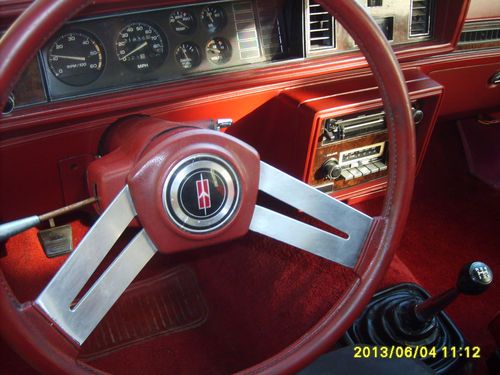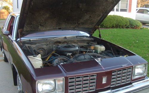 1979 OIdsmobile Cutlass Calais-This is an original 4.3 260 V8 Diesel that was converted to Gasoline 4.3 260 V8 at the Dealership back in the days-It is a Non Catalyst car,But since the Dealership did the conversion they put a Catalytic converter and the smaller exhaust system with out the dual tail pipes like the Diesel's Should have.It is a VERY Rare &Desireable 5 speed Manual equipped cutlass with all the Heavy Duty Suspension parts-it has the F41 option with the Huge Front&Rear Sway bars,The Rear Coils where Just swapped (The original are in a box&will go with the car)-Basically this car is Just like the HURST OLDS of them years(1979-1980)This is a Calais model &has Full gauge panel with Rpm-Oil-water -Voltage..the Brakes Are Hydroboost as is the Power steering-Everything works as it should-I did a Full tuneup-Put a High output H.E.I Ignition with Good Sparkplug wires-This is a Good survivor Oldsmobile-There is NO ROT -the Frame is Perfect-Trunkpan-Floors -All the USUAL Rot spot's are not on this Car-the paint is Decent but its typical of the quality of the year, Some clearcoat is peeling in spots-But there is no Damage &The Body is PERFECT-Inside there are Reclining Bucket seats and everything inside is Good-Even the headliner is MINT! I have had a lots of G bodys&this is one that was taken care off-With Rare options=The Car Runs&Drives Smooth-the tranmission shifts Like NEW-The Rims are Olds Rallyes in Gold with Dunlop tires-If your into A Body&G Bodys-you will WANT this car-Its a runner driver-that is all there-Im offering it at a fair price-These are SO rare you will be the only at Cruise nite with one-I Require 5 or more feedbacks or your bid will be cancelled,I have many pictures if needed,As the Car sits now its a Economical Cruiser that is Fun to row thru the gears-HAPPY BIDDING