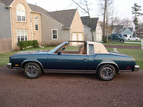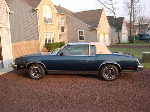 THIS IS A CAR THAT I HAVE OWNED FOR OVER THIRTY TWO YEARS IT IS NOW CONSIDERED AN ANTIQUE. IT HAS BEEN METICULOUSLY KEPT AND GARAGED DURING THIS TIME PERIOD. I BOUGHT THIS CAR BACK IN 1981 WITH 15000 MILES ON IT AND DROVE IT AS MY EVERYDAY CAR FOR ABOUT FOUR YEARS. I THEN PUT IT AWAY AND ONLY DROVE IT OCCASIONALLY ON NICE DAYS. THE 86000 MILES ARE THE ORIGINAL MILES THIS CUTLASS WAS THE SPORTY MODELDUBBED THE CALAIS THAT CAME WITH BUCKET SEATS FLOOR SHIFTER AND CONSOLE AND A GUAGE PACKAGE INCLUDING A TACHOMETER. IT WAS THE SAME CAR THAT OLDSMOBILE MADE THE HURST OLDS FROM. THIS PARTICULAR CAR WAS EQUIPPED WITH A CHEVY 305 ENGINE FROM THE FACTORY, A FACTORY POSI REAR AND FACTORY DUAL EXHAUST. A PRETTY COOL CAR IN STOCK CONDITION. SINCE THEN IN 1995 I DECIDED TO MAKE THE CAR FASTER THAN IT ALREADY WAS. SO THE ENTIRE DRIVETRAIN HAS BEEN PROFESSIONALLY REPLACED WITH HIGH PERFORMANCE EQUIPMENT. HERE ARE SOME DETAILS: THE ENGINE IS A CHEVY 350 CID V8 EQUIPPED WITH A CRANE CAM, ROLLER ROCKERS, HI RISE EDELBROCK MANIFOLD, EDELBROCK 600 CFM PERFORMANCE SERIES CARBURATOR. THE EXHAUST STARTS WITH HEDDMAN HEADERS TO TURBO MUFFLERS TO CHROME TIPPED TAILPIPES. THE TRANSMISSION IS A TH 350 THAT HAS BEEN WORKED AND HAS A SHIFT KIT. CHIRPS SECOND GEAR!!! THE FACTORY POSI REAR NOW HAS 3.73 GEARS SO IT WILL JUMP OFF THE LINE BUT STILL DRIVE DOWN THE HIGHWAY. ALSO A MILD STALL SPEED CONVERTER FITS NICELY INTO THIS COMBINATION. ALSO, WE PUT IN A TRIPLE CORE RADIATOR TO ASSURE THERE WOULD BE NO OVERHEATING. THIS CAR RUNS STRONG! ALL THIS WORK WAS DONE UNDER A THOUSAND MILES AGO. I HAD THE WORK DONE IN PHILADELPHIA. SO THE CAR HAS BEEN DRIVEN FROM THERE TO THE ATLANTIC CITY AREA WHERE I RESIDE NOW. IT HAS SPENT MOST OF IT’S TIME SITTING IN THE GARAGE SO I HAVE JUST REPLACED THE BATTERY WITH A FRESH NEW INTERSTATE BATTERY. SO IT STARTS UP EVERY TIME! THIS CUTLASS ALSO HAS SOMETHING IN IT THAT IS EXTREMELY RARE. AN ORIGINAL HURST OLDS DUAL GATE SHIFTER AND TRIM PLATE WITH LIGHT IN BRAND NEW CONDITION! I FOUND THIS SHIFTER RIGHT AFTER I DID ALL THE WORK TO THE DRIVETRAIN. IT CAME IN THE ORIGIONAL GM BOX AND WENT RIGHT INTO THE CAR. TRY TO FIND ONE OF THESE SHIFTERS. BELIEVE ME IF IT’S NOT IN A HURST OLDS YOU WON’T. MUSIC COMES FROM A KENWOOD AM FM CASSETTE POWERED WITH AN AMP IN THE TRUNK. NOT MUCH BY TODAY’S SOUND SYSTEMS BUT QUITE ADEQUATE. REMOVABLE GLASS T-TOP ROOF PANELS MAKE THIS CAR REALLY FUN TO DRIVE WHEN THE WEATHER IS NICE. THE AIR CONDITIONING UNIT HAS BEEN REMOVED FOR PERFORMANCE BUT I STILL HAVE IT SO I CAN PROVIDE IT. TO GIVE YOU SOME KIND OF IDEA WHAT KIND OF LOVE IS IN THIS CAR, OR YOU COULD ALSO SAY WHAT KIND OF NUT I’VE BEEN WITH IT, TAKE A GOOD LOOK AT THE PICTURES. LOOK AT THE FACTORY OLDS RALLY WHEELS. THERE ARE BRAND NEW LUG NUTS AND BRAND NEW BEAUTY RIMS. I ALSO STILL HAVE THE OWNERS MANUAL AND BROCHURE FOR THE 1979 OLDSMOBILE PRODUCT LINE. OBVIOUSLY THIS CAR HAS BEEN WITH ME FOR A LONG TIME SO IT IS VERY HARD TO PART WITH. BUT IF YOU ARE LOOKING FOR A CAR OF THIS TYPE YOU WILL POSITIVEY NEVER FIND ONE EQUIPPED LIKE THIS OR IN A CONDITION EVEN CLOSE TO THIS ONE!!! GOOD LUCK BIDDING!!!