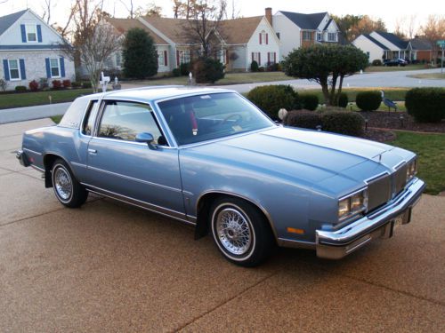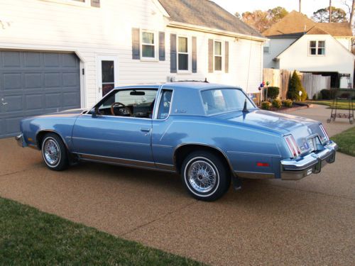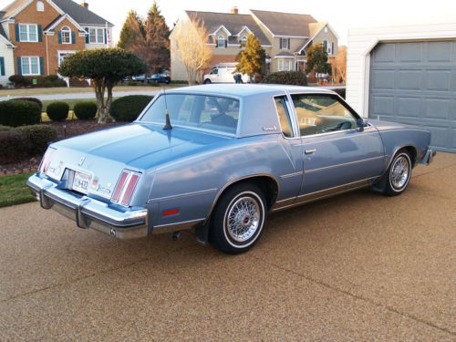 2 Door Sedan. Only 47,836 Original Miles This 34 year old original 4th generation Cutlass was bought brand new in 1980 and has one original owner. Clear title. The light metallic blue paint on this car is in excellent condition and this car has not been in any accidents. Garaged kept daily for 34 years. Powered by a 231 cu. in. (3.8L) Buick V6 engine with 4-speed automatic transmission, power steering, power brakes, factory air conditioning, cruise control, tilt wheel, AM, FM radio, Landau roof and factory wire wheel covers. 1980 was the first year GM introduced the OBD-1 computer controlled engine management and emission control system in these cars. The medium to dark blue interior is in great shape, clean and has been well maintained through the years. The only add on's are gas charged radial master shock absorbers in the rear and CB radio with antenna. Selling the car as is, so please buy with confidence. Good Luck as you bid on this Cutlass and feel free to email if you have any questions. |