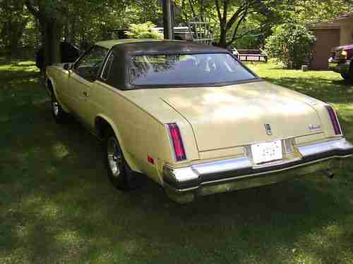 1976 OLDS CUTLASS SALON 350 V8 AT, PS, PB, AC, TILT, CRUISE AM-FM WITH 8 TRAC-TAPE WITH 55,160 MILES. T HIS CAR IS VERY CLEAN WITH NO DAMAGE ORG 2 OWNER CAR. EVERYTHING WORKS EXCEPT THE 8 TRAC- , GOOD COLD AIR (134R). THIS CAR HAS BEEN IN THE SAME FAMILY FOR 27 YR, IT HAD 027125 ON IT IN 86. RUN AND DRIVES PERFECT, NO SMOKE OR RUST, VERY GOOD PAINT ( ONE REPAINT ABOUT 15 YR AGO) INTER- IS NEAR PERFECT (ALL ORG). ALL GLASS ARE GOOD, NEAR NEW TRIES. CAR NEEDS NOTHING, ALL GUAGES AND LIGHTS WORK. E-MAIL WITH ANY QUESTIONS. RESERVE THE RIGHT TO END BIDDING AT ANY TIME FOR SALE LOCALY
