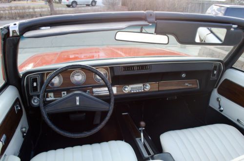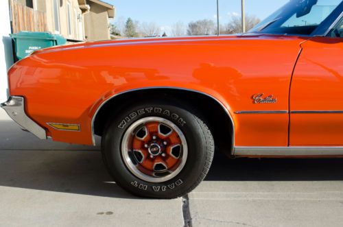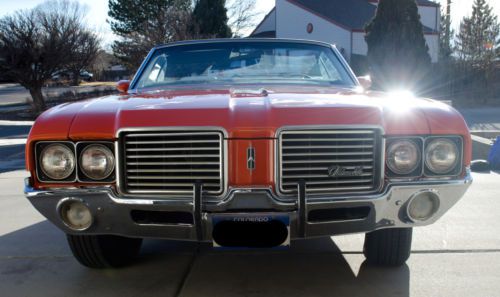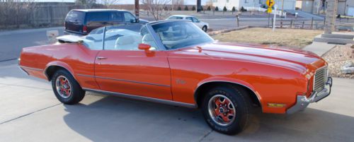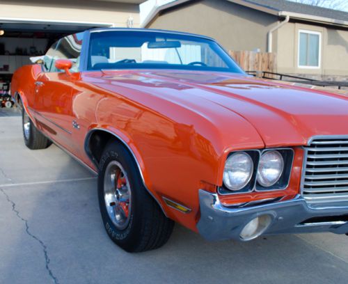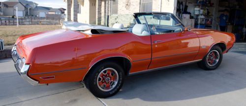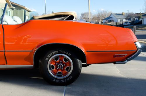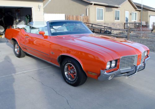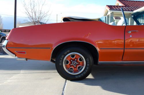 Sweet! A dream car, purchased in 2007. This is a collector quality car! You are bidding on a original, excellent condition 1972 Cutlass Supreme Convertible with only 96K actual miles. 1972 was the last year they made the convertible. 350 V8, 2 barrel, Turbo 350 automatic transmission, super stock I wheels, PDB, PS, Power Top, A/C,AM radio. The colors are orange with a white top and cover which are all original and in excellent condition. No tears or wear on the interior, convertible top or cover. It has been repainted one time in the original color. This car has always been garaged and pampered. The shine and quality are excellent with no scratches in the paint. There is one small chip in the hood(smaller than a dime) and one small raised spot over driver's side rear wheel well (smaller than a quarter). All instruments and a/c are operable and there is an auxiliary fuel pump added. Chassis is in very good original condition without any significant rust, see pictures of trunk, etc. Wheels and tires in beautiful condition. The car runs and drives and is in remarkable mechanical condition. Come and take a look or order an inspection. Car speaks for itself. This is a beautiful car you will not be disappointed, put the top down, turn the key and drive in style. Email to set up time to take a look or have someone do an inspection.