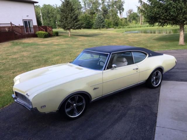 SELLING MY 1969 OLDSMOBILE CUTLASS F85 WITH 83,000 ORIGINAL MILES. 350V8 ENGINE, 350 AUTO TRANSMISSION, BUCKET SEATS, CONSOLE SHIFTER, DUAL EXHAUST. RUNS AND DRIVES GREAT! POWER STEERING, POWER BRAKES, AC (NEEDS BELT & RECHARGE). CAR HAS BRAND NEW 18X8 & 18X10 BOSS WHEELS AND NITTO 555 TIRES, BRAKES, CARPET, FLOOR MATS, SEAT FOAM, STEREO, DASH, PACKAGE TRAY, TRUNK MAT, RUBBER DOOR AND TRUNK SEALS, ETC., ETC. I ALSO HAVE THE ORIGINAL MATCHING YELLOW 15" RALLY WHEELS WITH NEWER TIRES THAT COME WITH THE CAR. EVERYTHING WORKS - LIGHTS, WIPERS, HORN, GAUGES, ETC.,
