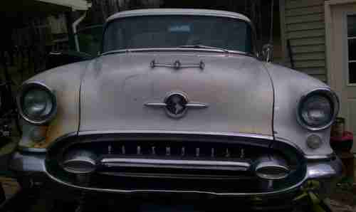 1955 OLDS 88 HOLIDAY 4 DOOR SEDAN FOR AUCTION. NO TITLE. RUST FREE EXCEPT FOR SOME SURFACE RUST. INTERIOR IN GOOD COND. EXCEPT FOR DRIVERS SEAT. IT IS V-8 AND AUTOMATIC. ENGINE IS MISSING CARB. DONT KNOW CONDITION OF MOTOR OR TRANS. PLEASE EMAIL WITH QUESTIONS. AS STATED BEFORE NO TITLE IS AVAILIBLE. THANKS