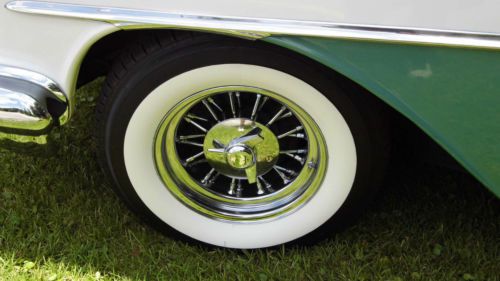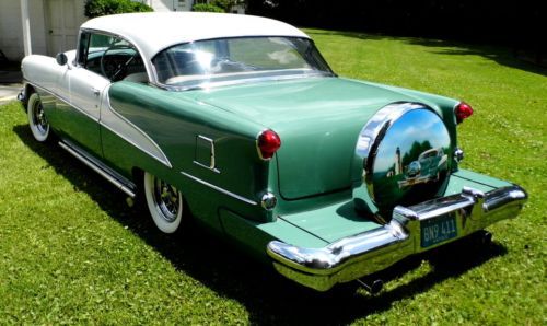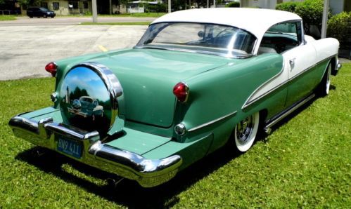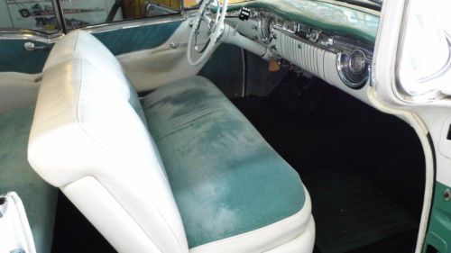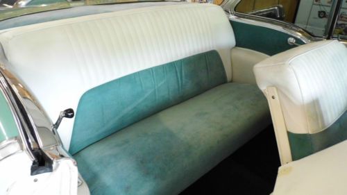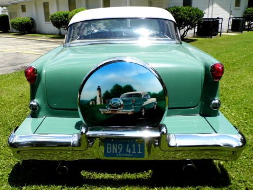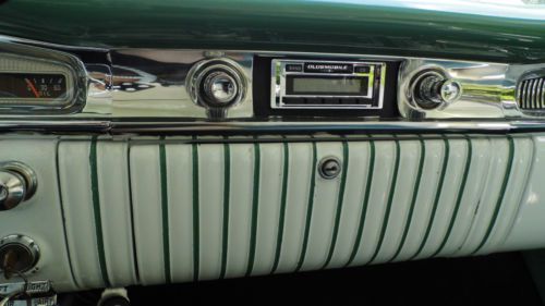 1955 OLDSMOBILE SUPER 88 HOLIDAY ORIGINAL CALIFORNIA CAR, BUILT IN SOUTHGATE, CALIFORNIA PLANT GOOD RUNNING 324 CUI V8 WITH A 4 BARREL CARBURETOR SMOOTH SHIFTING HYDRA-MATIC TRANSMISSION BEAUTIFUL POLAR WHITE OVER GLEN GREEN PAINT WITH NO RUST ANYWHERE COOL CONTINENTAL KIT NON-FUNCTIONAL CHROME LAKER SIDE PIPES FIBERGLASS CRUISER FENDER SKIRTS VERY NICE, BRILLIANT CHROME AND BRIGHT WORK NICE CHROME 15 INCH WHEELS LIKE NEW RADIAL WIDE WHITE WALL TIRES FACTORY POWER ASSISTED BRAKES ALL LIGHTS AND TURN SIGNALS WORK GREEN AND WHITE INTERIOR IS IN GREAT CONDITION WITH ALL THE CHROME TRIM IN PLACE ALL INTERIOR CHROME IS IN GREAT SHAPE AFTERMARKET INDASH DIGITAL AM/FM RADIO WITH MP3 HOOK UP **WATCH VIDEOS OF THIS CAR AT THESE LINKS!** INSPECTIONS AND APPRAISERS WELCOME!!!! JOHNNY 904-993-5037
