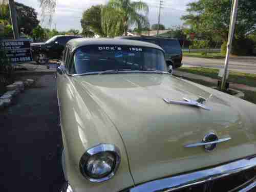 We have a 1956 Oldsmobile Super 88.This car belonged to my late father.He took well care of this car.We had it running about 6 months ago and ran great.I had the carb. rebuilt and had to drain all the gas out of it as it was in there for a while.We have had it covered since dad passed in 2009.When we went to start again wouldnt start.It cranks fine but not getting gas.I bought a new fuel pump on ebay and again Started right up and drove fine.Next day would not start again.We were going to put a electric fuel pump in it.But we just dont have room for the car anymore.My son detailed the outside of car and still has a great shine.There are a few scratches here and there but nothing major.The front passenger window is cracked but does not leak.My mom closed the door which is very heavy and window was down and it cracked.There a tear in the front seat but it is not bad.The back seat is perfect.I know my father had transmission rebuilt before he passed.He drove this car weekly and was his pride and joy.We hate to get rid of it but 5 cars is just too much to just let this car sit.I do not believe there are any major problems with this car other then the fuel getting to carb.The chrome is in good shape with maybe tiny pitting spots.But nothing major.I'm going to put a few pictures up now and will put more up when i can take pictures in the daylight.If there is any questions please feel free to ask.Buyer will need to make a 500.00 Deposit at end of auction.Buyer must arrange for own shipping.The title is clear and in hand.If car purchased in Florida it has a legal !956 Florida plate on it i can check to see if i can transfer to buyer.The trunk is full of extra parts like brake pads filters gaskets there are repair manuals and some other things but the trunk is full of stuff for the car.Thank you for looking.Good luck.Feel free to make a fair and reasonable offer as we dont need to sell but we are not going to give it away.Thank you