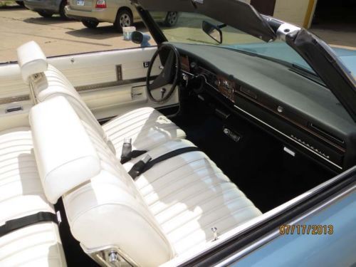All original 1975 Oldsmobile Delta 88 Royale Convertible. Horizon Blue exterior with White interior and top. Purchased from original family. 350 V8, Power Steering, Power Brakes, Air Condition, original AM/FM radio. JVC I Pod compatible radio mounted professionally in custom floor console. Has no dash alterations and original radio or dash has not been altered. A/C is complete but has been disconnected. Interior and top is original and in beautiful condition. Dash is perfect with no cracks. All gages, lights, top, heater, defrost, wipers, turn signals and all electrical function properly. Paint is beautiful. Nice chrome and trim. Tires (P225/75R15) are newer. Car has never been driven in winter and has always been stored inside. Original 22,484 miles car. This car starts, runs and drives perfectly. Can be driven anywhere. Documentation includes original Bill of Sale, owners manual. Clear title. Pick this car up or we will ship it nationally or worldwide for you. We are experts in shipping and have shipped many cars and trucks worldwide. We only charge actual shipping costs and can use your shipper or ours. Let us send this Classic beauty to you and take care of all the details. Call Nick at 586-797-9040 (office) or 586-453-9316 (cell). Or, email us at nick@dreamcruiseclassics.com . I will be happy to answer any question that you have. |
