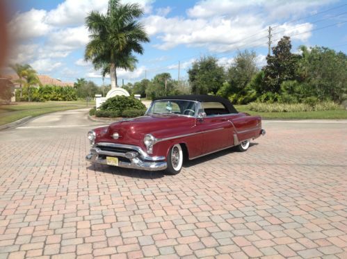 What we have here up for sale is a beautiful 1953 Olds. 98. Original Denver car. This car had a totally frame off restoration done around 15 years ago. This car was absolutely rust free before restoration and still is. Paint shines as it should with no nicks dings or dents. Chrome shines as well. Car is equipped with a 4 speed hydra-matic trans,power window,sets and steering. 5 Diamond Back wide white wall radial tires. Harz top. Stainless steel exhaust. Car has 12,500 since restoration was completed. Runs drives and handles like a new car. The undercarriage is as clean and rust free as the car. You would be hard pressed to find one in this condition. The pictures speak for themselves. I can email pictures if there's something special you want to see. Sorry no Paypal on this item. Cash or wire transfer. If you have any questions feel free to call Jerry at (609)412-8170. Shipping and cost are the responsibility of the new lucky owner. Check out my feed back and buy with confidence. I have sold high dollar cars before and maintain my 100% positive feedback. THIS CAR IS IN VERO BEACH FLORIDA 32960
