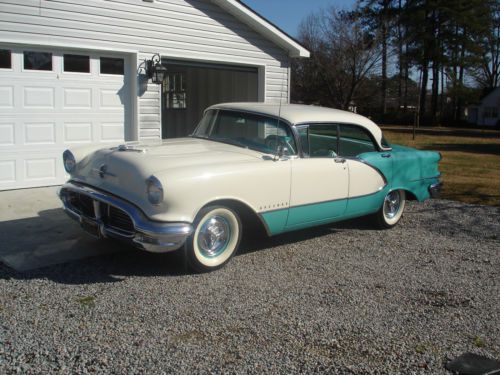 1956 Oldsmobile Ninety Eight 4 Door Holiday With Rocket V-8 Blue And White on 2040-cars