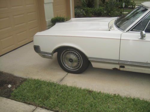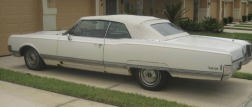 I'm selling a 1965 Oldsmobile 98 Convertible. I purchased the car from the second owner while I was living in Colorado in the early 90's. The odometer currently reads 119,342. It has been non-functioning for some time but I estimate the car has between 150,000 to 175,000 original miles. While needing significant work, overall the car is in good, restorable condition. It is all original with the optional Olds 425 cu. in., 370 h.p., Starfire engine and three-speed Turbo Hydro-Matic transmission. It comes equipped with every available option for 1965. The car runs, however, the engine uses oil and will require, at minimum, a complete top-end overhaul. The battery tray area was damaged by a leaking battery. The rest of the engine compartment is in good condition but it will require a thorough cleaning. The car retains the factory dual exhaust system which needs replacing. Within the last five years, the carburetor has been rebuilt, the gas tank has been refurbished, and the fuel pump, battery and alternator have all been replaced. The body has rusted through in some areas (see photos), but is in restorable condition. The most significant issue is the hood. There is complete rust-through along the front where moisture tends to collect along the chrome trim. Because of the rust-through, the hood latch released while the vehicle was being driven and additional damage occurred to the hood, hinges and springs. The floor pans and undercarriage appear to be solid but do have significant surface rust as shown in the photos (note - all photos shown are current except for the pictures of the undercarriage. They were taken two years ago and the car has been garaged since then). The interior is all original and in reasonably good condition. There are some repairs needed to the upholstery and carpet. The convertible top is relatively new, and in good working condition. Power seat and window controls function intermittently, as do the headlights and taillights. The air conditioning components are all present, however, the system is non-functioning at this time. The tires still have a significant amount of tread remaining. There is also a custom fitted car cover with the vehicle. I had hoped to restore this car myself, however, current circumstances dictate otherwise. This is a great car for someone looking to restore a true classic. This vehicle is being sold as is, where is, with no warranty, expressed, written or implied. While the car is in drivable condition, due to the issues with the hood, exhaust and lights, plans should be made for the vehicle to be transported. The buyer is responsible for all shipping costs. Please e-mail me with any questions. Good luck with bidding. |