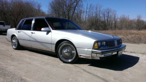 FOR SALE IS MY 1986 OLDSMOBILE NINETY-EIGHT CUSTOM LOWRIDER. WAY TO MANY THINGS TO LIST, CALL WITH QUESTIONS. I HAVE ALL RECEIPTS. I HAVE OWNED AND BUILT THIS CAR FOR 14 YEARS, NOTHING WRONG JUST TIME FOR IT TO GO. HERE ARE THE BASICS: AIR RIDE, 10 SWITCHES, TRAIN HORNS, CRUSH VELVET INTERIOR, KICKER L7 15, THREE AMPS, CONCEPT COMPONENTS, 17 INCH PLAYER WIRE WHEELS, NEW VINYL TOP, NEW PAINT 2 YEARS AGO, REBUILT MOTOR AND TRANSMISSION AT 110K. ALMOST EVERY PART ON THE CAR HAS BEEN REPALCED WEATHER IT NEEDED IT OR NOT. 2 OWNER, NO ACCIDENTS! PLAESE CALL WITH QUESTIONS.THANKS FOR LOOKING.