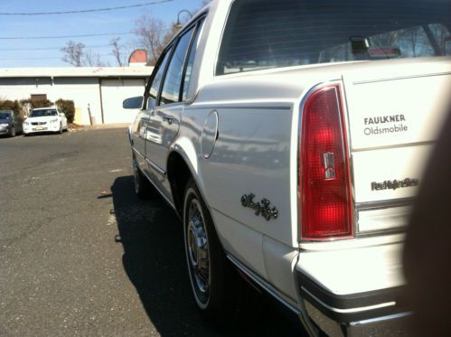 Up for sale is a 1986 Oldsmobile 98 Regency Brougham with only 19,000 original miles. This car looks like it just rolled off the showroom floor! Possibly the best example in existence! Nicer than most 6 month old cars! This Oldsmobile was garage kept and appears to have never been driven in bad weather. Options include pw,pdl,ps,pm,tilt,cruise, brougham package, wire wheel hubcaps, am/fm cassette, and ultra rare voice alert system (car talks to you!) The undercarriage is super clean! Interior still smells new and seats are plush. Rear seat looks to have never been sat in! No fading on the interior and the headliner is not drooping like most gm cars of this time period. Dash is free of cracks. The exterior is super straight and appears to be all original paint! Original vinyl top is in perfect condition with no cracking or shrinkage. All chrome and bright work looks brand new and without any pitting or haze. (NOTE: lower rocker panel moldings are not messed up. It is the reflection off the ground that you are seeing. that is how clear they are, another definite sign of this car's limited use!) Even all the lenses are bright and clear. Starts up first shot every time and runs beautifully. Transmission shifts nice and smooth. Drives just like a 19,000 mile car would. All manuals are included with the car as well as the original window sticker and complementary Oldsmobile cassette tape. Do not let this one get away! Very few left, let alone nice ones. Museum quality! Perfect for an Oldsmobile collector! You will not be disappointed with this car! It is even better in person! I reserve the right to end this auction at anytime. If you have less than 10 feedbacks please call to confirm your bid. |