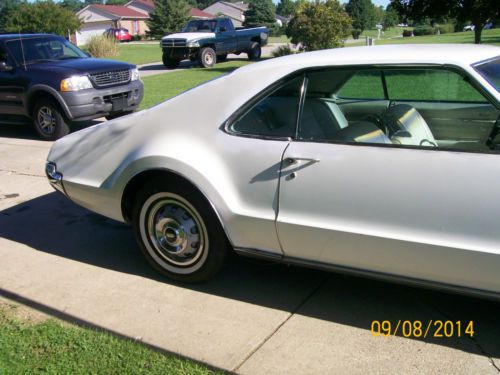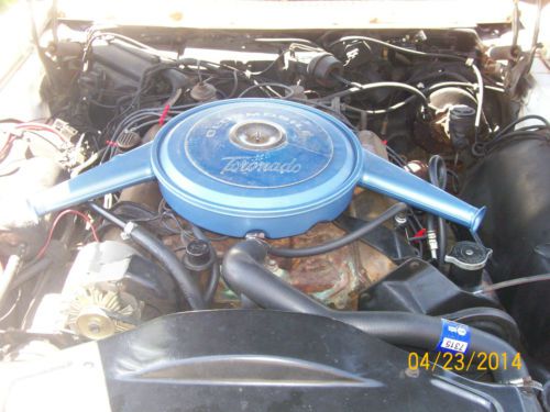 1966 oldsmobile toronado the car was in a garage in indiana for the last 30 years .The gentleman who owned the car pass away there was no title so i have a ky rebuild title clear in my name .The motor and trans was rebuild in 1980 at 97000 mile the car was put up in a garage in 1981 The car has 97900 on it now i do have all service records from 1979 .The car is in good condition for it year the car is not rusted out floor pans and frame are in good condition. When i got the car the paint was flaking off from a repaint it had back in 1980 .There was some spots on the hood the front and rear air vents and roof rails and around the door handle i did DA it down and prime it .the interior is in very good condition no tears on the seats, headliner ,and door panel The carpet is like new all seat belt are very nice .The heat and defrost works but the low and high speed dial is stuck. You can hear a little sound out of the radio but the antenna is broke.The signal light lever is broken off .The air conditioner is all there have not check it out to see if it works All the power windows works put the driver side is a little slow and the passenger side rear works sometimes i did replaces the passenger side door window motor. All the bumpers center caps beauty rings shows very nice.The hidden headlight will need attention one of the light is very slow and the other does not work .Here what i did to so far I replaces all the brake and wheel cylinder ,all new tires,carburator .all new hoses .starter,fuel pump,gas tank clean,battery ,tune up ,and more .The car runs and shift good nice runs down the road at 90 no problem handle the curve good any question just message me thank you for looking