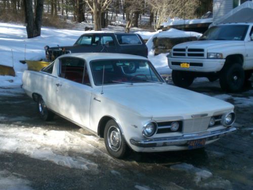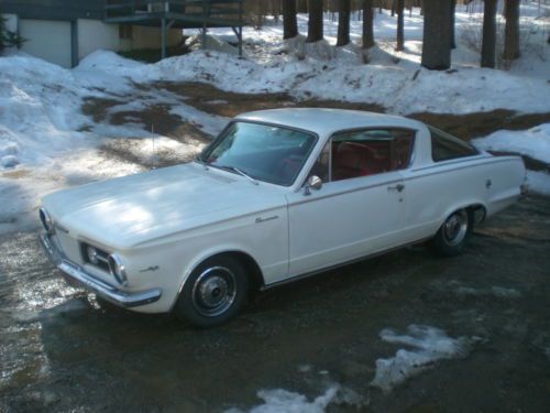 THIS CAR CAME FROM THE FACTORY WITH A 273 COMMANDO V8 ENGINE AND CONSOLE AUTO TRANS. IT STILL RETAINS ALL OF ITS COMMANDO SPECIFIC PARTS. THE CAR HAS ALL NEW BRAKE SYSTEM AND REBUILT FRONT END. THE BARRACUDA IS SUPER SOLID, GOOD FLOORS, TRUNK AND FRAME. DOES SHOW SIGNS OF PREVIOUS BODY WORK. THE BARRACUDA NEEDS COSMETICS BUT IS A GOOD DRIVER AS IS. IM LISTING FOR A FRIEND. FOR MORE INFORMATION CALL TOM @ 518-325-7199
