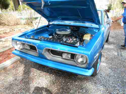 THIS IS A 1967 NOTCH BACK 273 HP CAR.I HAVE THE FACTORY INSTALLED ENGINE IN STORAGE.IT IS A GOOD RUNNING ENGINE.CAN BE DROPPED RIGHT BACK IN.THE CAR NOW HAS A1971 340 ENGINE IN IT.IT HAS BEEN BUILT BY LOCAL PERFORMANCE SHOP. 030 OVER 10.5 COMPRESSION CRANE GOLD ROCKERS NEW ROCKER SHAFTS.BIG MUTHA THUMBER RETO ROLLER.EDELBROCK HEADS .NEW RODS CRANK.THIS COMBO WAS PICKED FOR PERFORMANCE.CAR HAS BEEN DRIVEN VERY LITTLE SINCE THE ENGINE WAS INSTALLED.WEIAND ACCELARATOR INTAKE NEW EDELBROCK AVS TYPE CARB.ENGINE ALING BORED DECKED ARP MAIN HEAD AND INTAKE BOLTS.TO MUCH DONE TO LIST ALL.BACKED BY TCI COUSTOM CONVERTER 904 TRANNY,355 POSI REAR 83/4 REAR ALSO I HAVE AN OPEN 276 FOR GAS MILAGE.THIS IS NOT A SHOW CAR BUT A VERY NICE DRIVER.THE GUY I BOUGHT IT FROM.HIS AUNT AND UNCLE BOUGHT IT NEW.THE FELLOW THAT DID ALL THE PAINT AND BODY WORK OWNED THIS CAR.THIS CAR ALSO HAS A AFTER MARKET SIX PACK HOOD ON IT.I HAVE THE FACTORY HOOD,BUT IT IS IN BAD SHAPE.THIS CAR WAS RESORED ABOUT 5 YEARS AGO.THE 273 HP MOTOR IS COMPLETE AND ROAD READY.THE PAINT DOES HAVE A FEW BAD SPOTS ON DRIVER SIDE DOOR AT THE BOTTOM,BUT BESIDES THAT STILL LOOKS NICE,DRIVER SEAT NEEDS A REPAIR ON THE BOTTOM.REALLY GOOD CAR OVER ALL I THINK.JUST TIME TO SELL.THE LOW RESERVE PRICE IS 13,000 SHIPPING UP TO BUYER.1000.00 DEPOSITED IN PAYPAL ACCOUNT WITH IN 24 HRS OF CLOSE OF AUCTION.CERTIFIED CHECK OR CASH AT PICK UP. CAN BE SEEN NEAR ROCKINGHAM NC