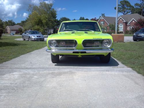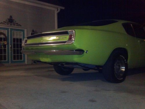 This barracuda has a 340 engine , J heads, auto, 8 and 3/4 rear with posi 355 and factory air that still works. Also has new transmission. new bumpers, thrush exhaust, new 650 edelbrock carb, new tires ,airshocks, and a new starter,This car is very clean I rate the interior a solid 9 and the paint a solid 9. the paint is new and cost me 5000. this car is RUST FREE please see pics. Don't want to sell but daughter is getting married and the wife said one of my mopars had to go. Who ever winds up with this car is going to be very happy and will have to do very little to it, If the car hits reserve I also have a new set of hooker headers, and new edelbock aluminum intake for the new buyer. I have plenty of pics if you need more. It would be very hard to find a fastback cuda for this price in this condition, If you have any questions please call me at 910 632 4823. Thanks