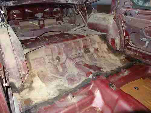 The interior of the car has been removed but is complete with the exception of the door panels. The front seats need new foam and covers, the rear seat is in good condition with no rips in the fabric. The lower dash is in good shape but upper dash is cracked badly. I have a black dash cover for the upper dash that comes with the car.