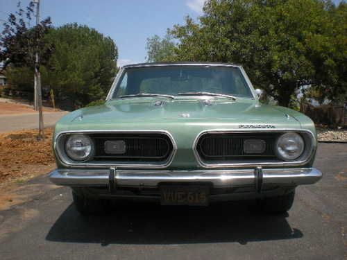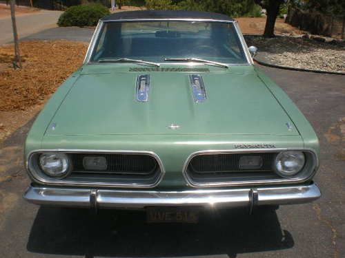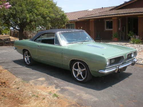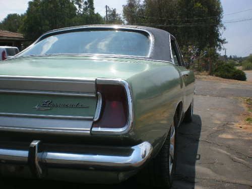 1968 Barracuda Coupe for sale. Very nice and original CA. Car. 225 /6 auto. 7 1/4 rear axle. Odometer reads 75k. May be actual mileage. Speedometer works perfect as do all interior dash lights and exterior lights. This is a very clean, super solid and straight '68 Barracuda. The heater and defroster are in great functioning condition. And even the hood mounted indicators work. Very minor rust in trunk area and pass. lower quarter. Probably some pin holes under the vinyl top. Temp. gauge and oil pressure gauges not working. The /6 runs great. The car drives pretty well. Front end drifts a bit, probably needs lower control arm bushings. The transmission also works great. The interior is in good original condition. a few tears in the front seats and the dash has a crack in it. Also needs driver door glass and vent wing window. This is a great little car with tremendous possibilities.