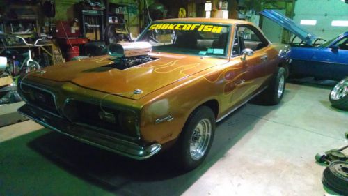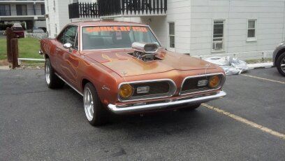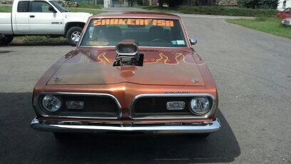 I HAVE FOR SALE MY 69 BARRACUDA, 440 4-SPEED WITH 3.54 DANA..... will be adding videos of the car so you can fully see and understand the value and worth of this lovely Italian influenced automobile........When these cars were being designed, Ghia (Fiat- funny how they own them now) had a great hand in the styling of the fascia and tail lights particularly of the 69 Cuda, shown by the sculpted nose and grilles of these fine cars . It was what made me seek out a nice 69 like this one here and take it to the next level. The holographic gold flames done with a smooth type of bass boat glitter are especially striking, and if you like street machines then this is certainly one of a kind. With all the polished aluminum under-hood, to the custom stitched leather seats and door panels, and the upgraded suspension and brakes, you not find a nicer modified. No butchery and clean execution, 30 years experience in building just Mopars and not a thrown together rattle trap, the car has won an award nearly every time I've shown it.....Oh, did i say it was FAST>>>????? You bet.....;@)